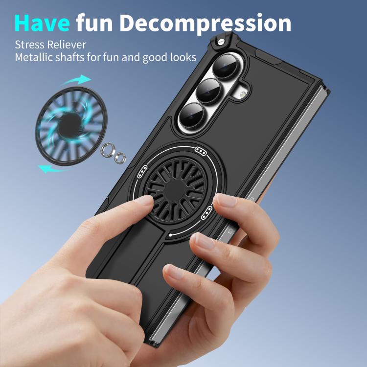 For Samsung Galaxy Z Fold7 5G Shockproof Kickstand Metallic Shaft MagSafe Phone Case(Rose Gold)