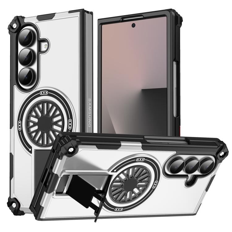 For Samsung Galaxy Z Fold7 5G Shockproof Kickstand Metallic Shaft MagSafe Phone Case(Silver)