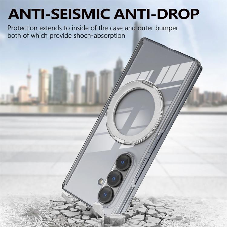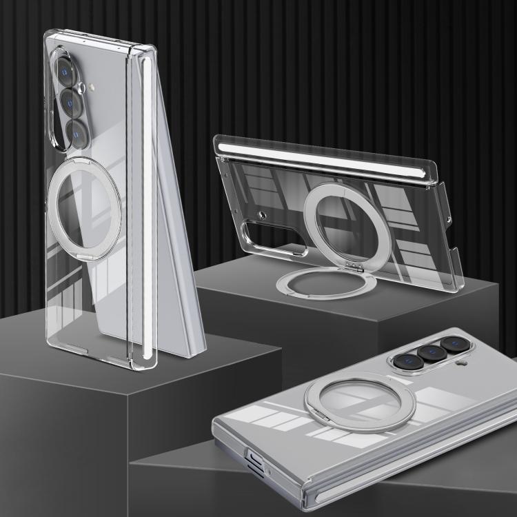 For Samsung Galaxy Z Fold7 Aluminum Alloy Holder MagSafe Crystal Hinge Phone Case(Silvery)
