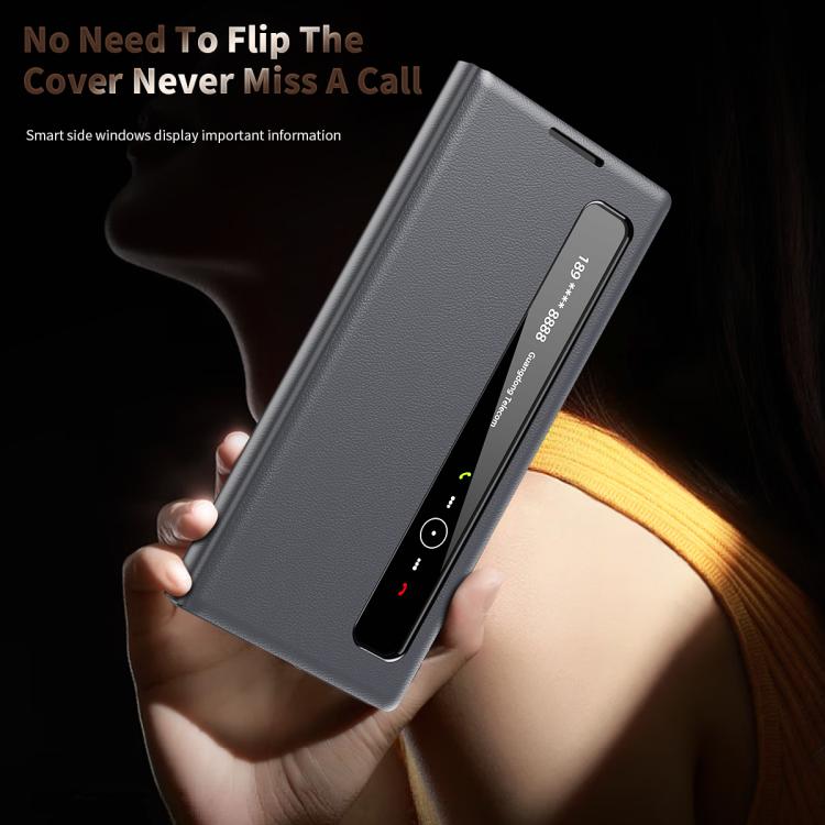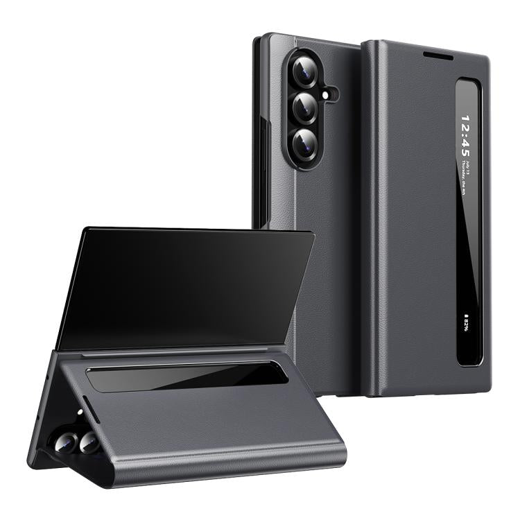 For Samsung Galaxy Z TriFold Smart View Window Leather Phone Case(Grey)