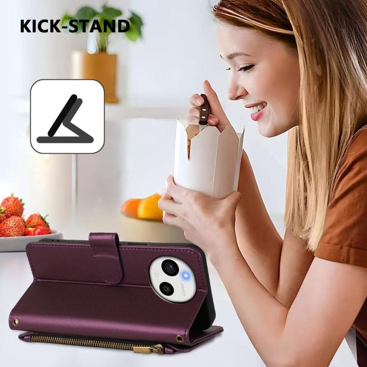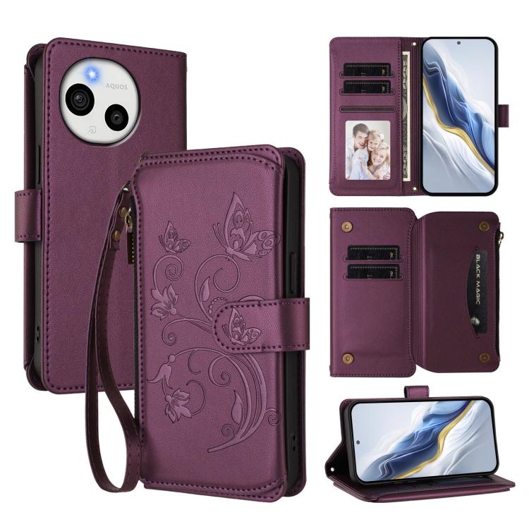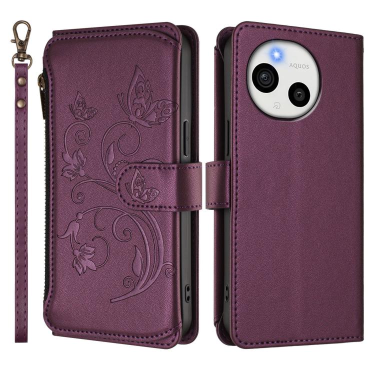 For Sharp Aquos Sense10 Butterfly Love Flower Multi-card Zipper Wallet Leather Phone Case(Dark Purple)