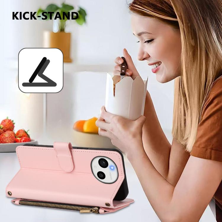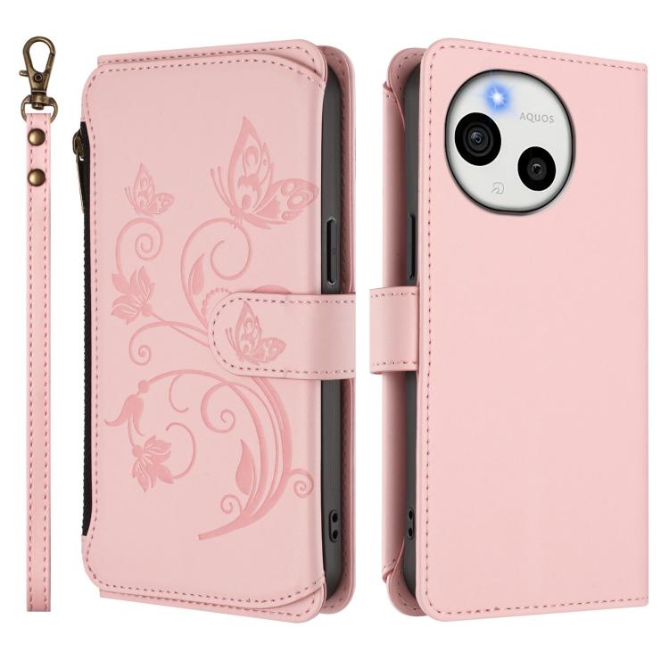 For Sharp Aquos Sense10 Butterfly Love Flower Multi-card Zipper Wallet Leather Phone Case(Pink)