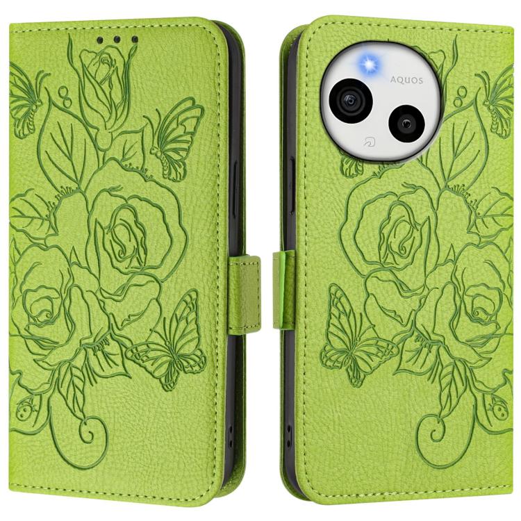 For Sharp Aquos Sense10 Embossed Rose RFID Anti-theft Leather Phone Case(Green)