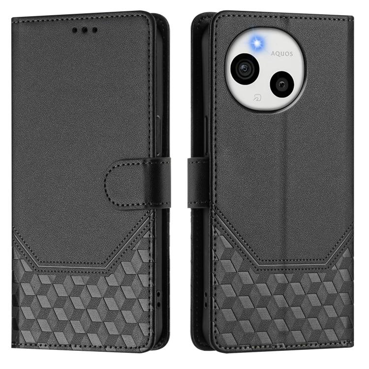 For Sharp Aquos Sense10 Honeycomb Embossing RFID Leather Phone Case(Black)