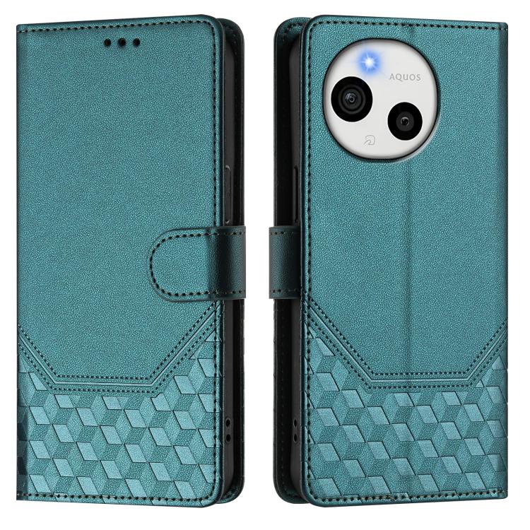 For Sharp Aquos Sense10 Honeycomb Embossing RFID Leather Phone Case(Peacock Green)