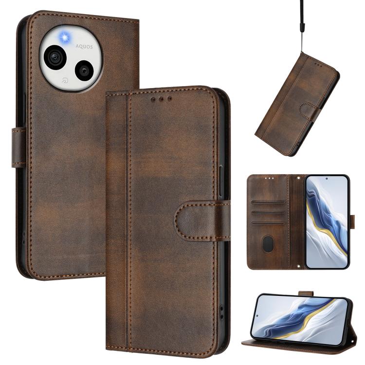 For Sharp Aquos Sense10 Line Splicing Buckle Retro Leather Phone Case(Brown)