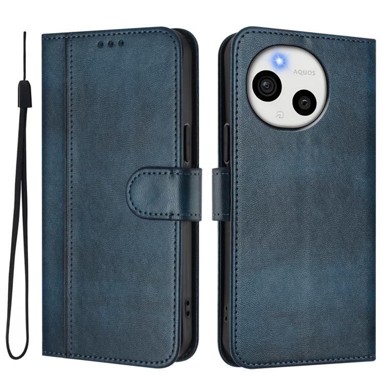 For Sharp Aquos Sense10 Line Splicing Buckle Retro Leather Phone Case(Dark Blue)