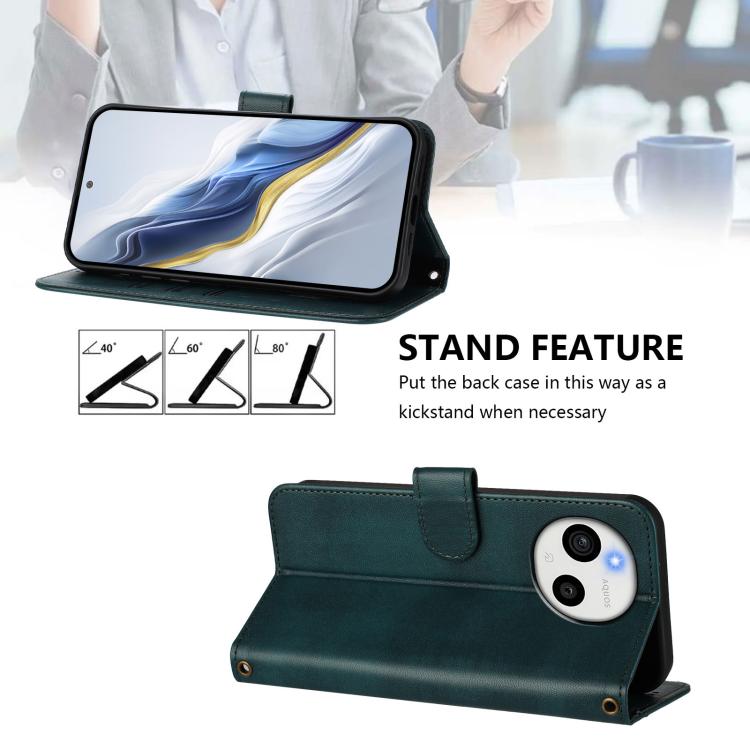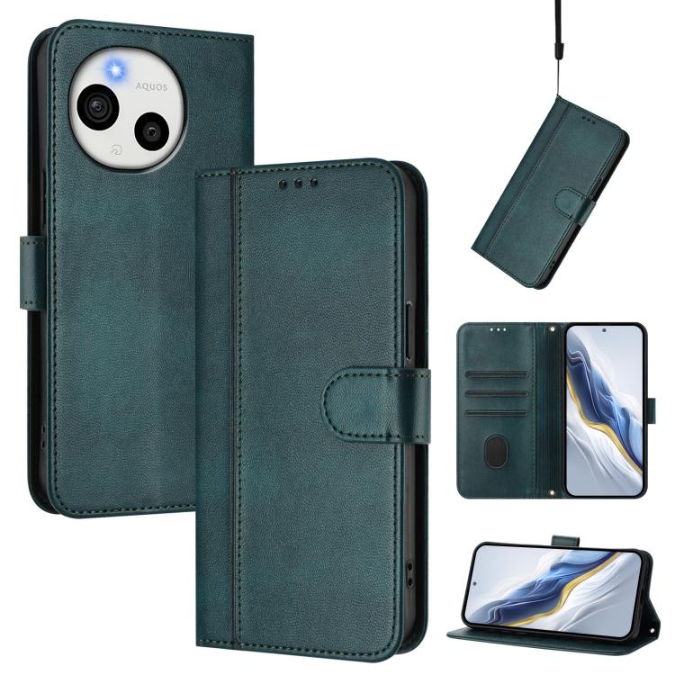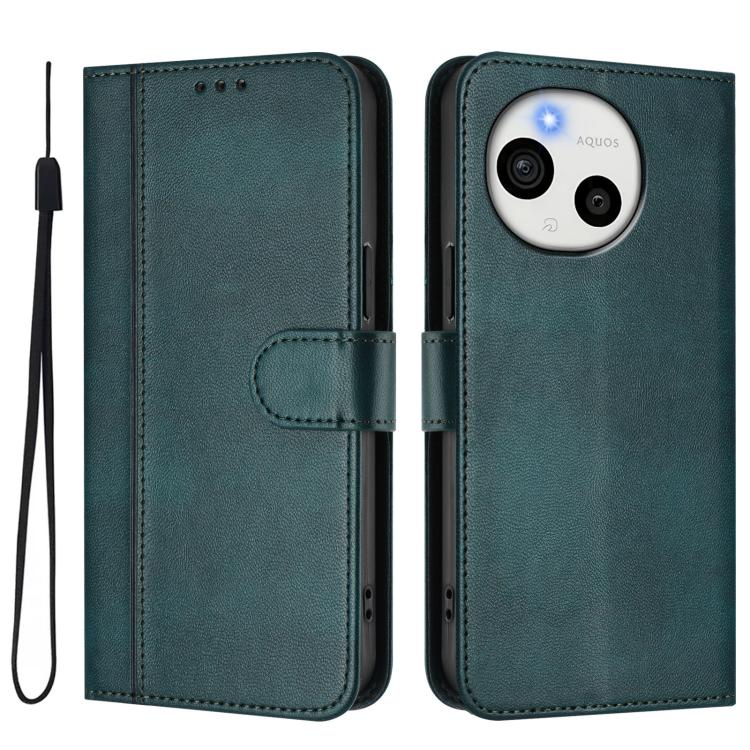 For Sharp Aquos Sense10 Line Splicing Buckle Retro Leather Phone Case(Dark Green)