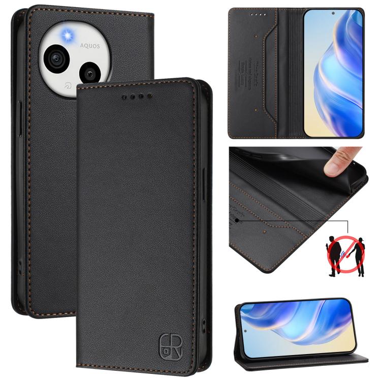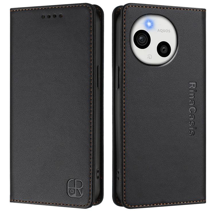 For Sharp Aquos Sense10 RC01 Dual-Folded Magnetic Suction RFID Leather Phone Case(Black)