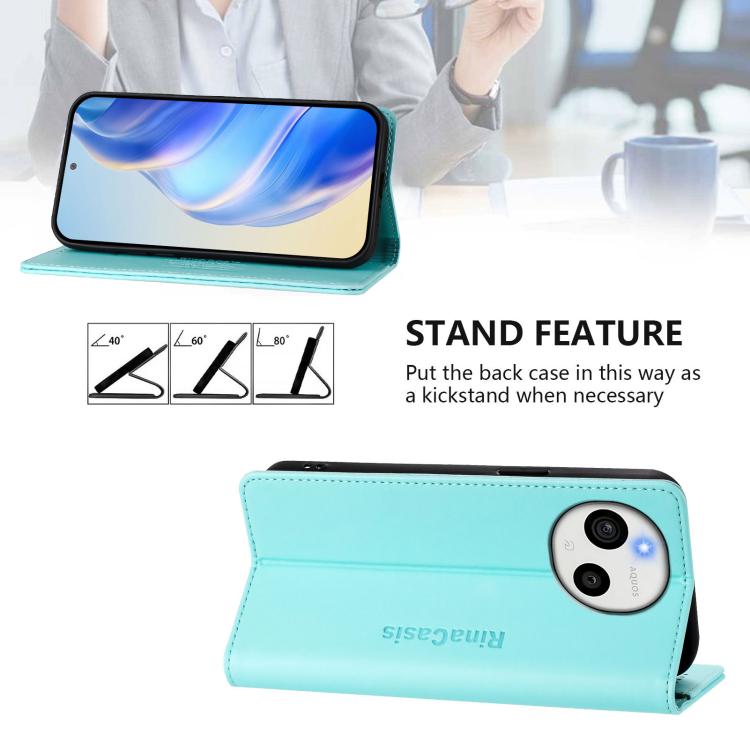 For Sharp Aquos Sense10 RC01 Dual-Folded Magnetic Suction RFID Leather Phone Case(Mint Green)