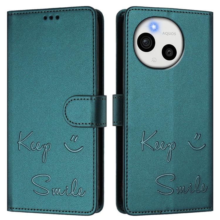 For Sharp Aquos Sense10 Smile Embossing RFID Leather Phone Case(Peacock Green)