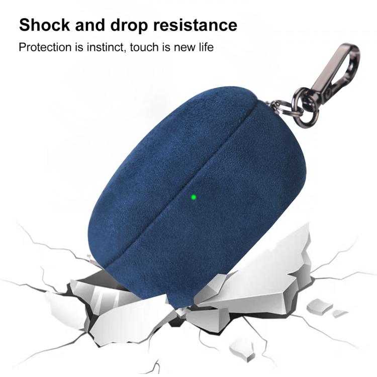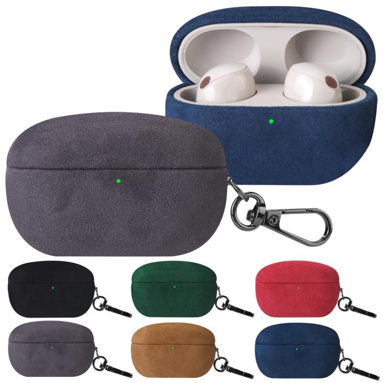 For Sony WF-1000XM5 Turned Fur Leather Earphone Case with Hook(Blue)