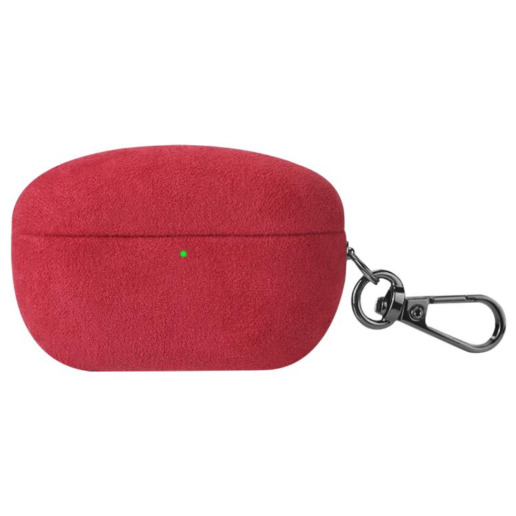 For Sony WF-1000XM5 Turned Fur Leather Earphone Case with Hook(Red)