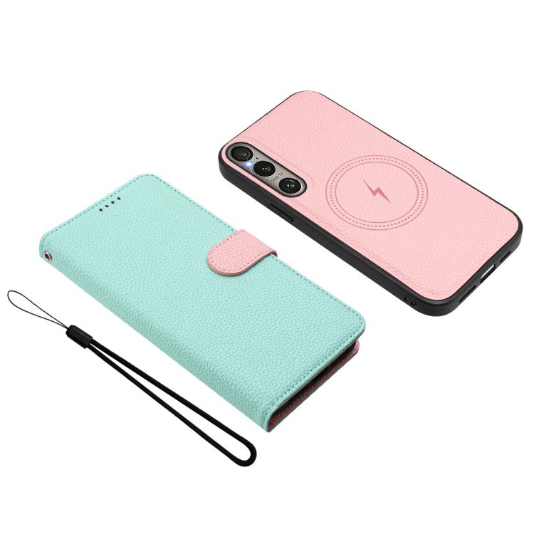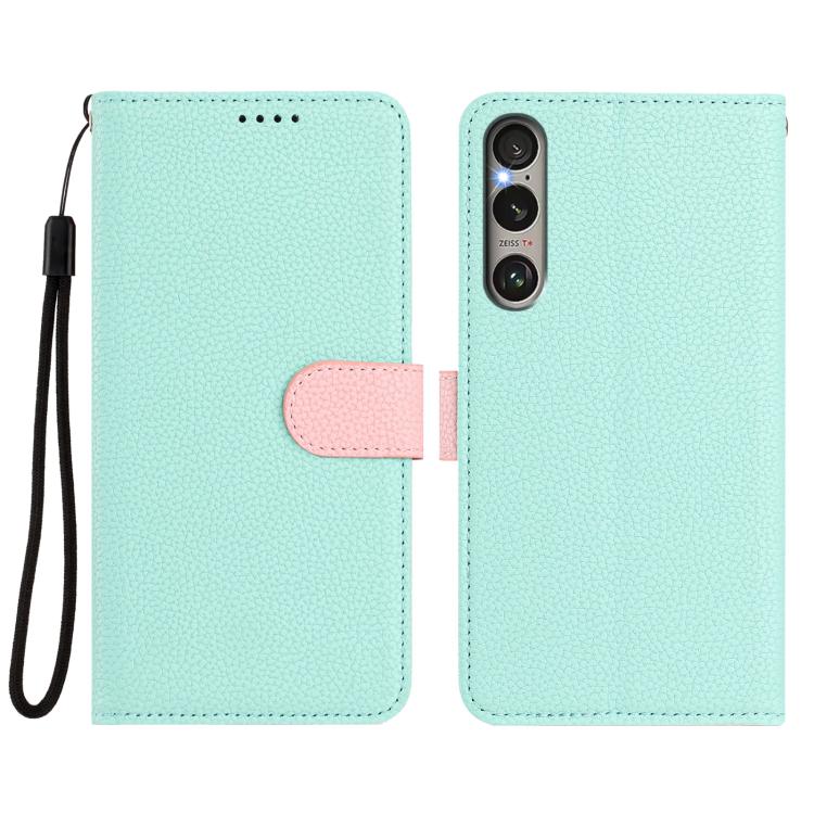 For Sony Xperia 1 VI Detachable Litchi Texture Magnetic Vegan Leather Phone Case(Mint Green+Pink)