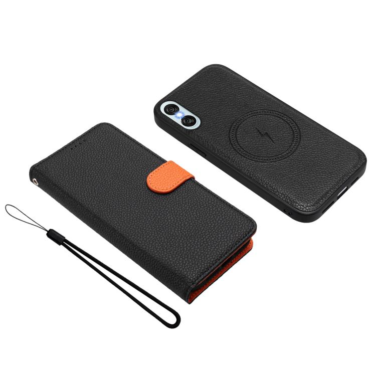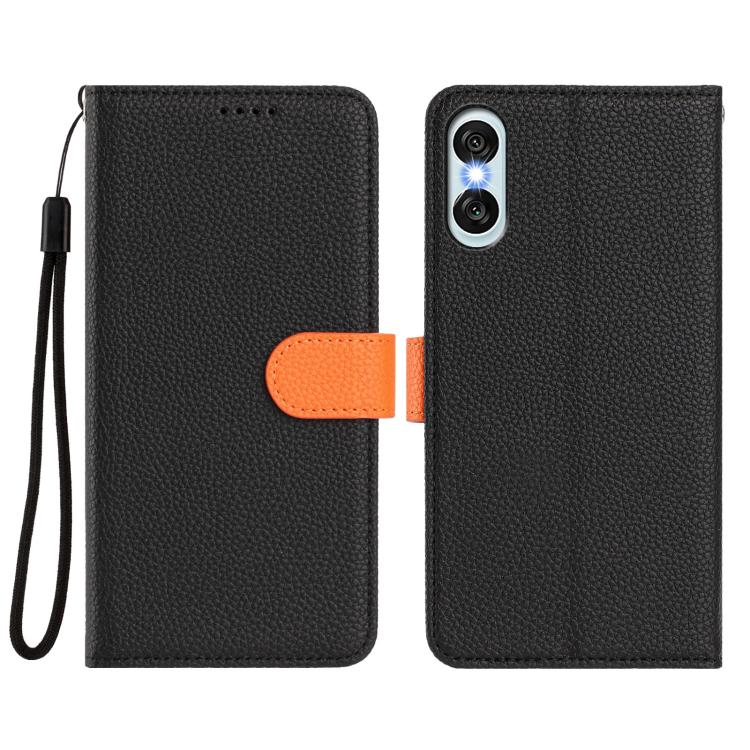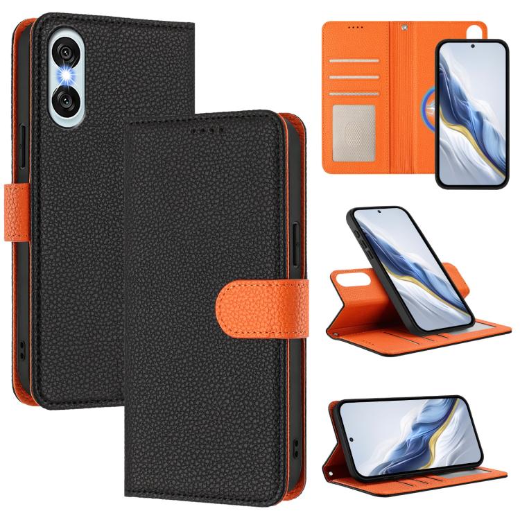 For Sony Xperia 10 VI Detachable Litchi Texture Magnetic Vegan Leather Phone Case(Black+Orange)