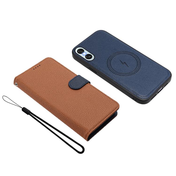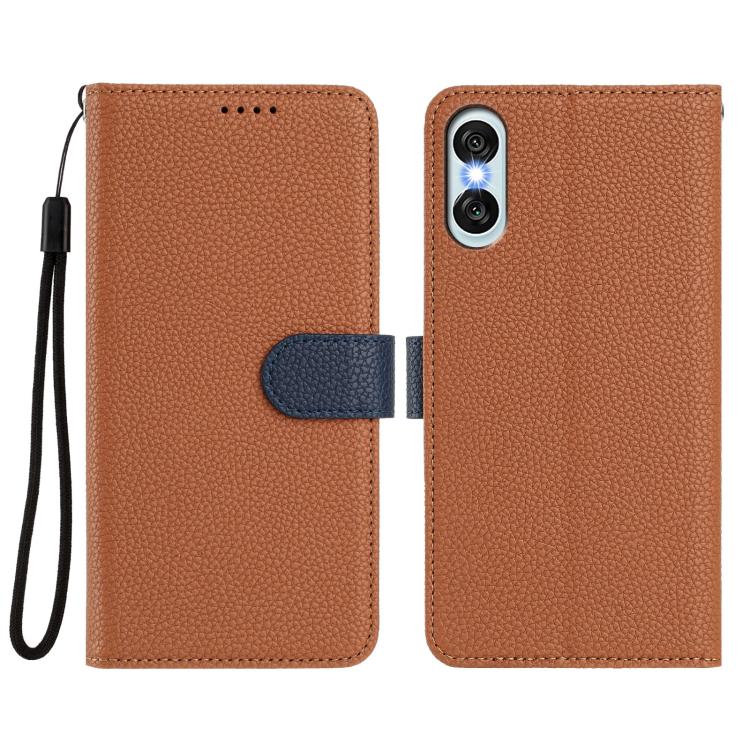 For Sony Xperia 10 VI Detachable Litchi Texture Magnetic Vegan Leather Phone Case(Brown+Dark Blue)