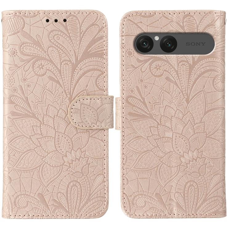 For Sony Xperia 10 VII Lace Flower Embossing Flip Leather Phone Case(Rose Gold)