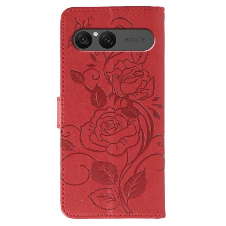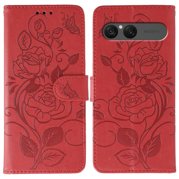 For Sony Xperia 10 VII Rose Butterfly Embossed Leather Phone Case(Red)