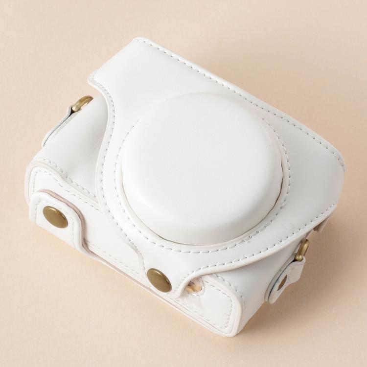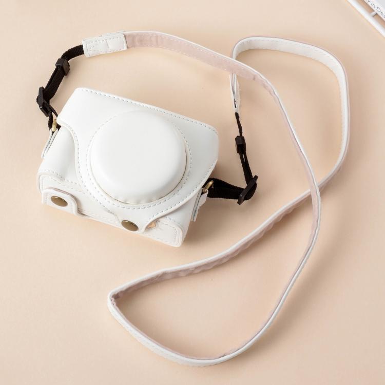 For Sony ZV-1F Vlog Camera Full Body Leather Camera Case Bag with Strap (White)