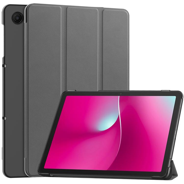 For T-Mobile REVVL Tab 2 Custer Texture 3-Fold Holder Leather Smart Tablet Case(Gray)