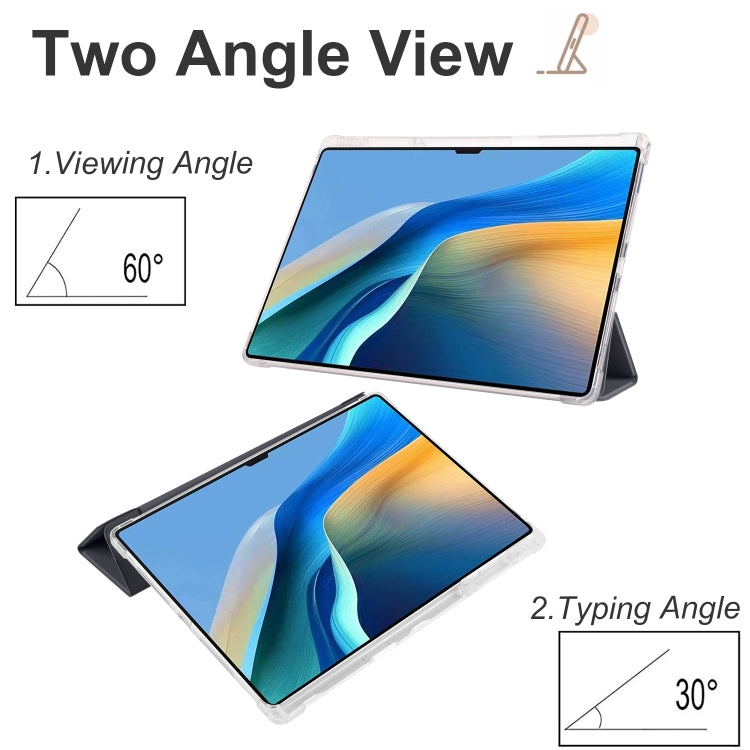For vivo Pad3 Pro 3-folding Transparent TPU Smart Leather Tablet Case with Pen Slot(Black)