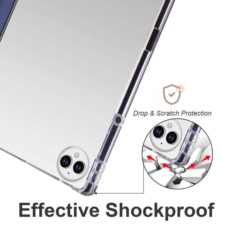 For vivo Pad3 Pro 3-folding Transparent TPU Smart Leather Tablet Case with Pen Slot(Dark Blue)