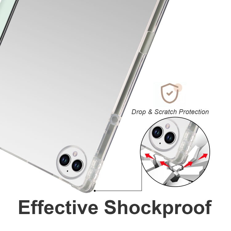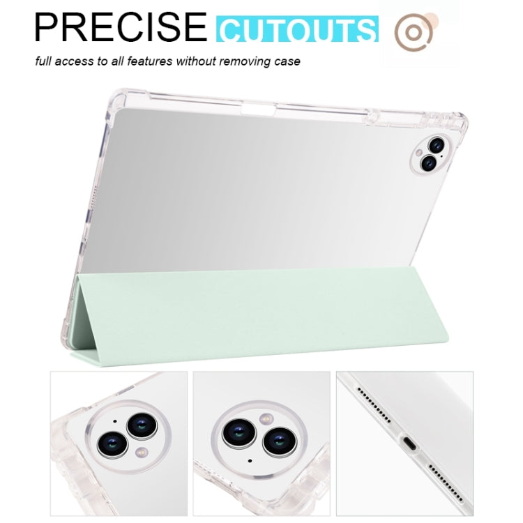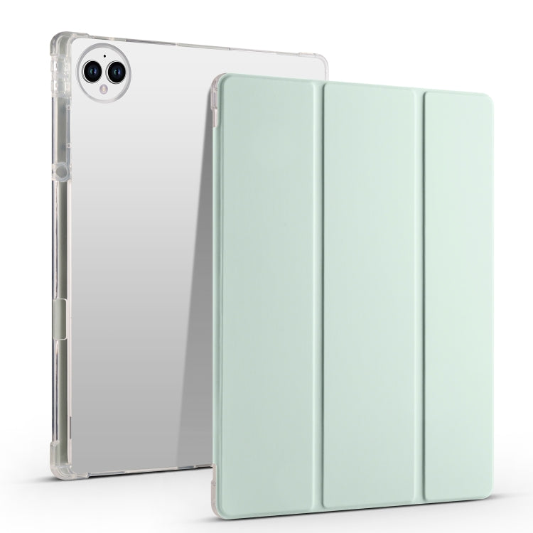 For vivo Pad3 Pro 3-folding Transparent TPU Smart Leather Tablet Case with Pen Slot(Light Green)