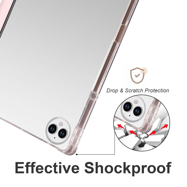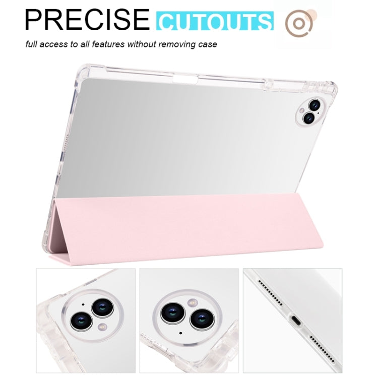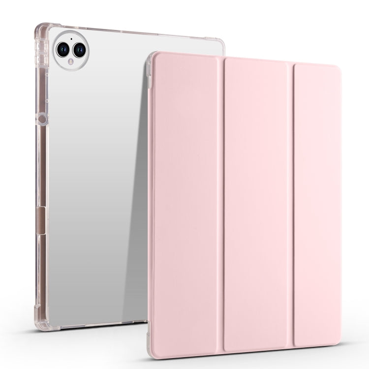 For vivo Pad3 Pro 3-folding Transparent TPU Smart Leather Tablet Case with Pen Slot(Pink)