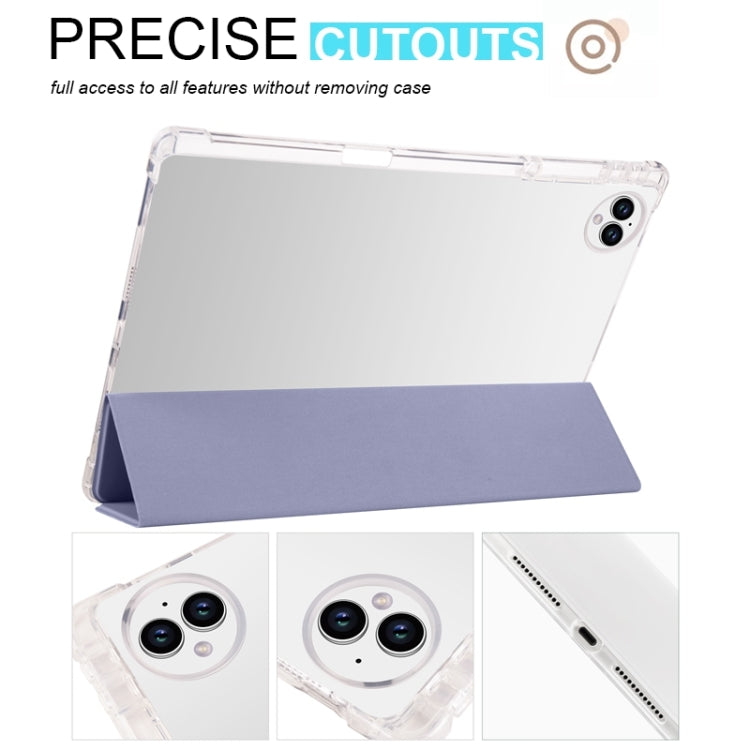 For vivo Pad3 Pro 3-folding Transparent TPU Smart Leather Tablet Case with Pen Slot(Purple)