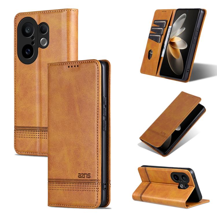 For vivo S30 Pro mini AZNS Magnetic Calf Texture Leather Phone Case(Light Brown)