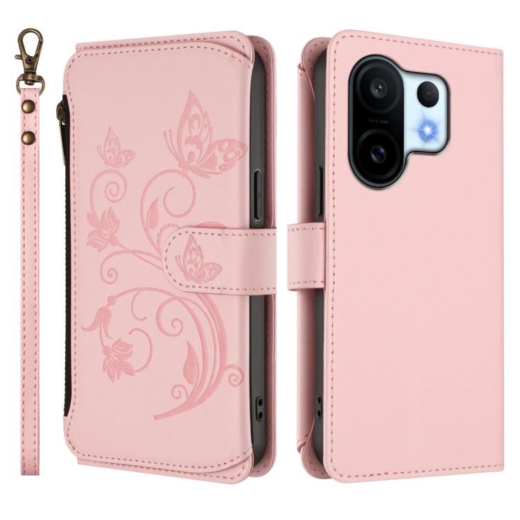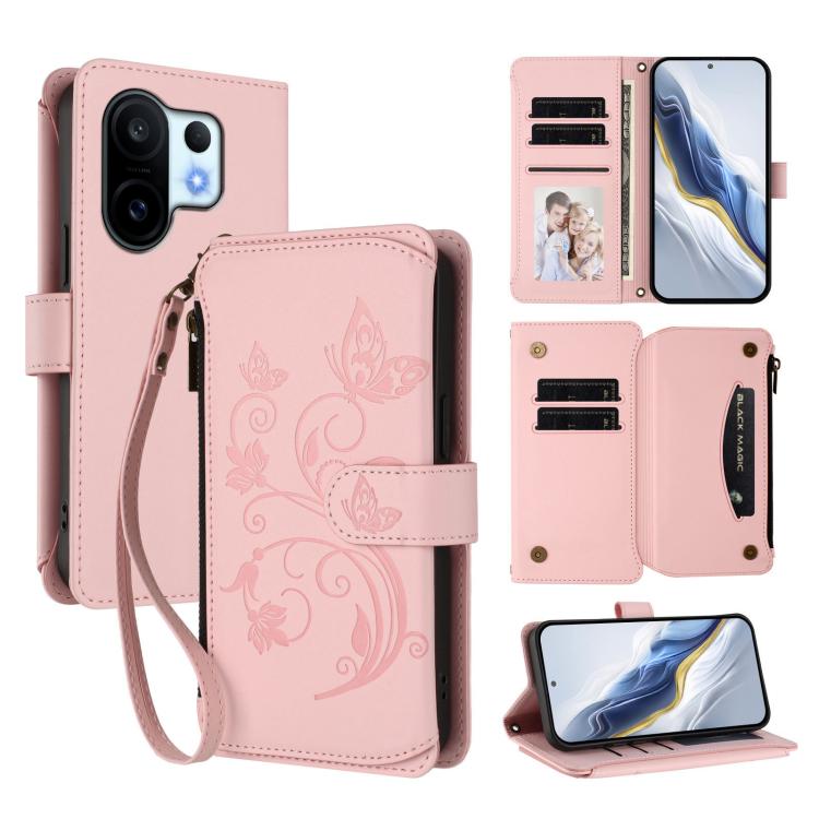 For vivo S30 Pro mini Butterfly Love Flower Multi-card Zipper Wallet Leather Phone Case(Pink)