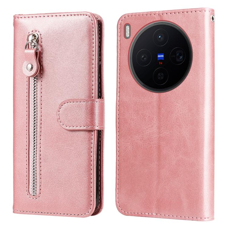 For vivo X300 Fashion Calf Texture Zipper Leather Phone Case(Rose Gold)