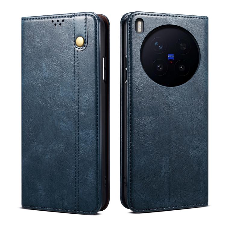 For vivo X300 Oil Wax Crazy Horse Texture Leather Phone Case(Blue)