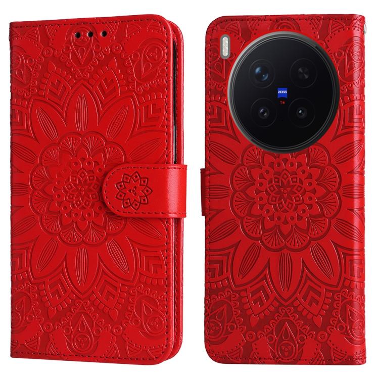 For vivo X300 Pro Embossed Sunflower Leather Phone Case(Red)