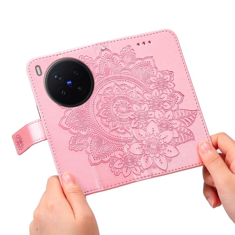 For vivo X300 Pro Seven-petal Flowers Embossing Leather Phone Case(Rose Gold)