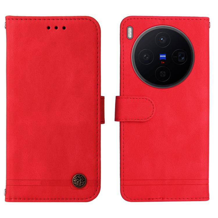 For vivo X300 Skin Feel Life Tree Metal Button Leather Phone Case(Red)