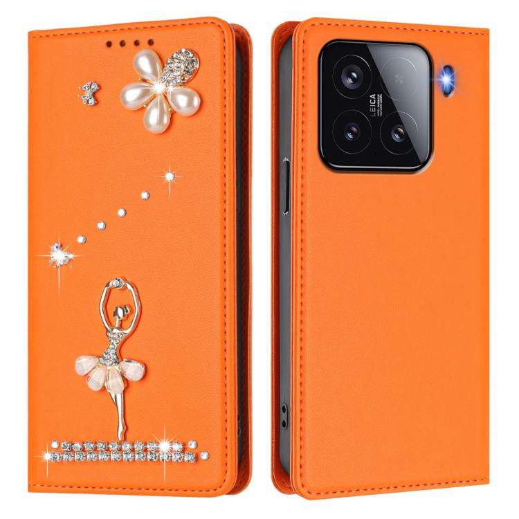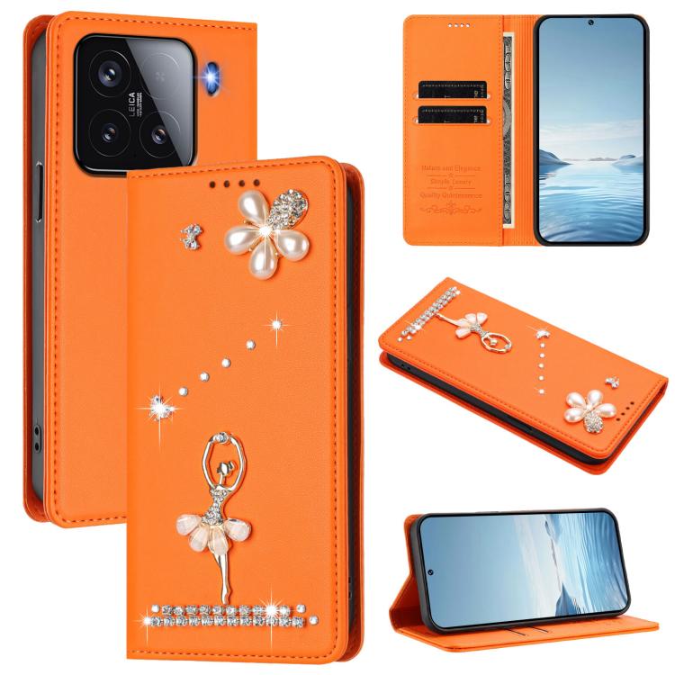 For Xiaomi 15 5G Ballet Girl Diamond Studded RFID Vegan Leather Phone Case(Orange)