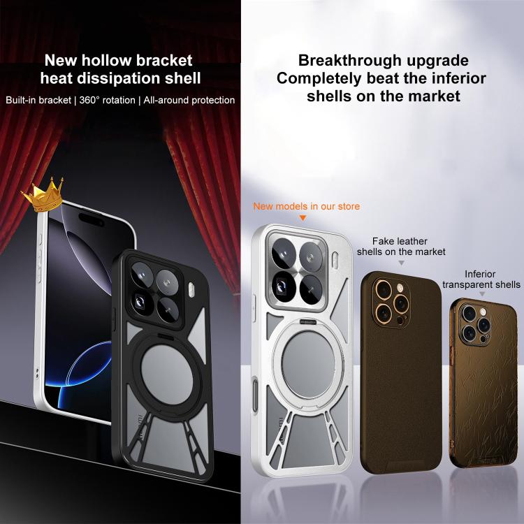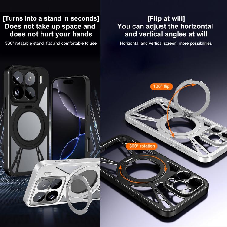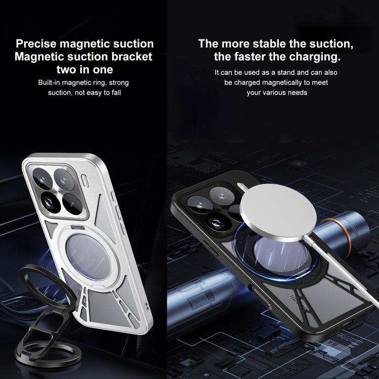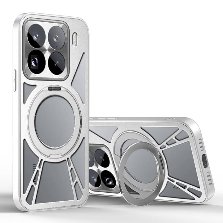 For Xiaomi 15 Pro Cooling Hollow Metal Holder MagSafe Phone Case(Silver)