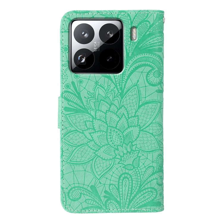 For Xiaomi 15 Pro Lace Flower Embossing Flip Leather Phone Case(Green)