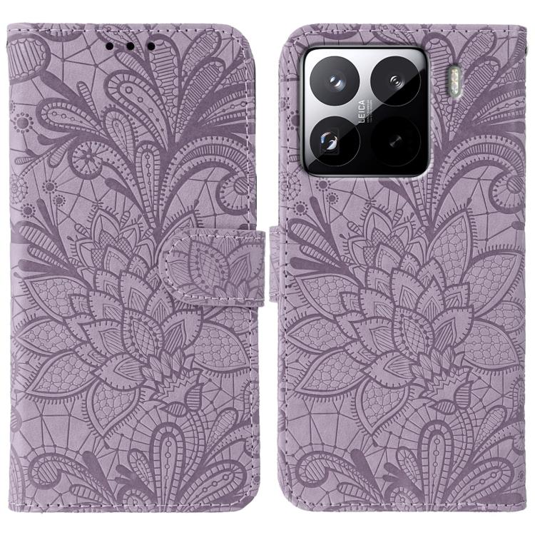 For Xiaomi 15 Pro Lace Flower Embossing Flip Leather Phone Case(Purple)