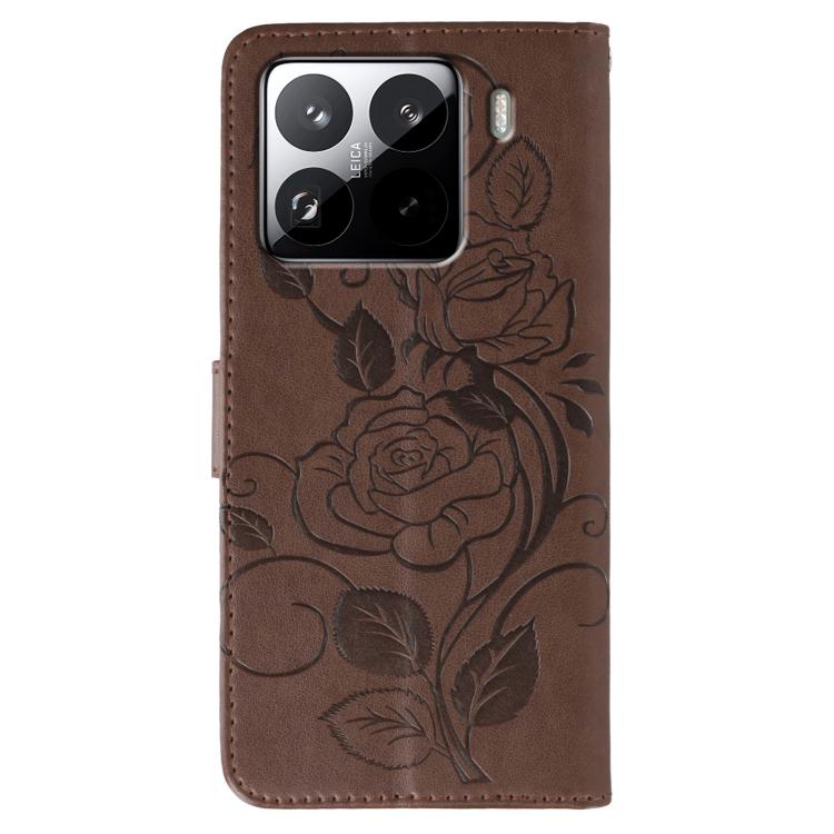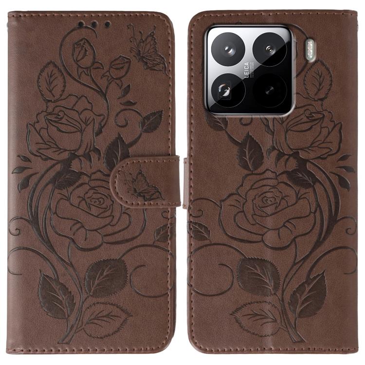 For Xiaomi 15 Pro Rose Butterfly Embossed Leather Phone Case(Brown)