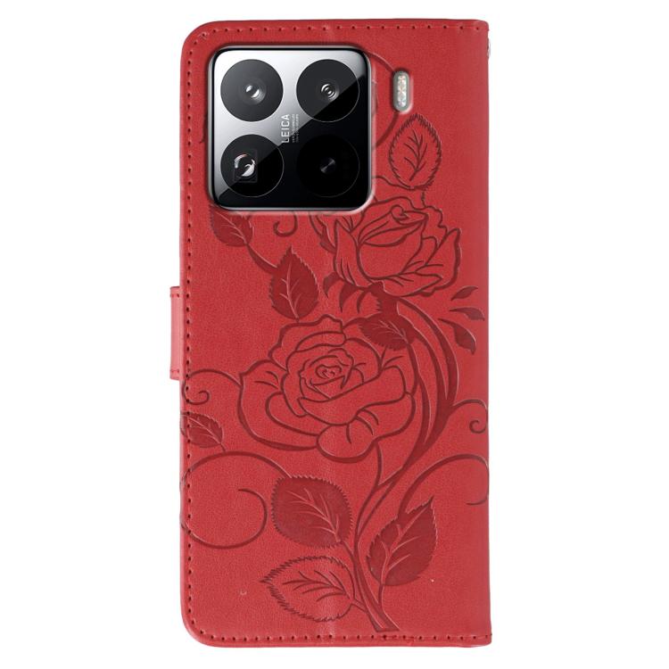 For Xiaomi 15 Pro Rose Butterfly Embossed Leather Phone Case(Red)