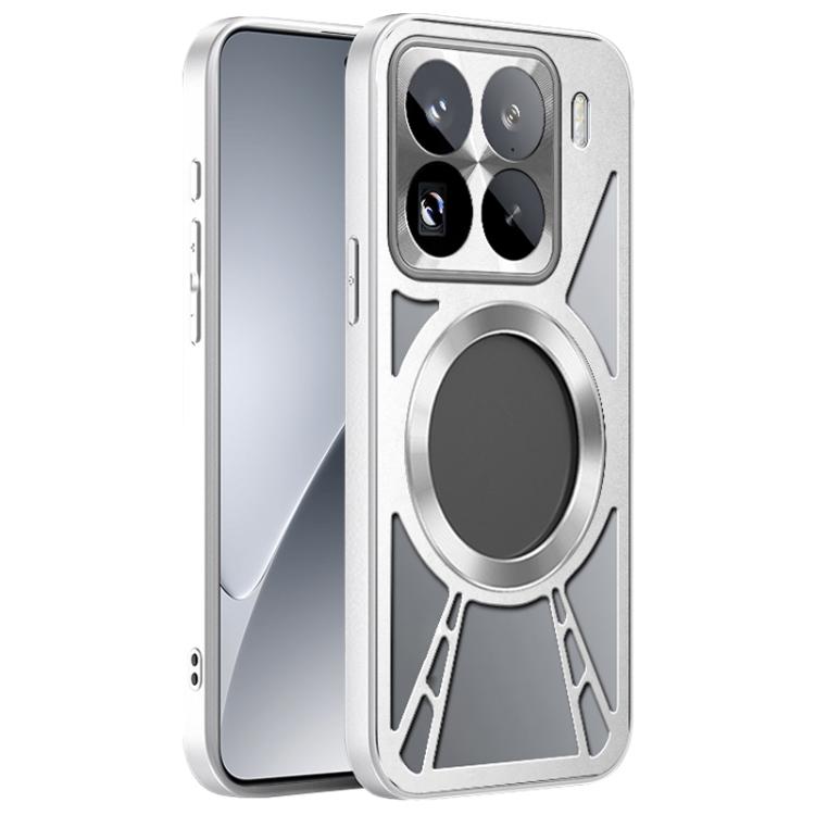 For Xiaomi 15 Pro Silicone Cooling Hollow Metal MagSafe Phone Case(Silver)