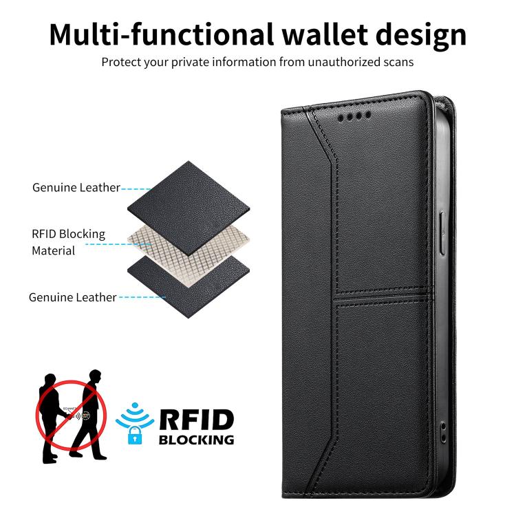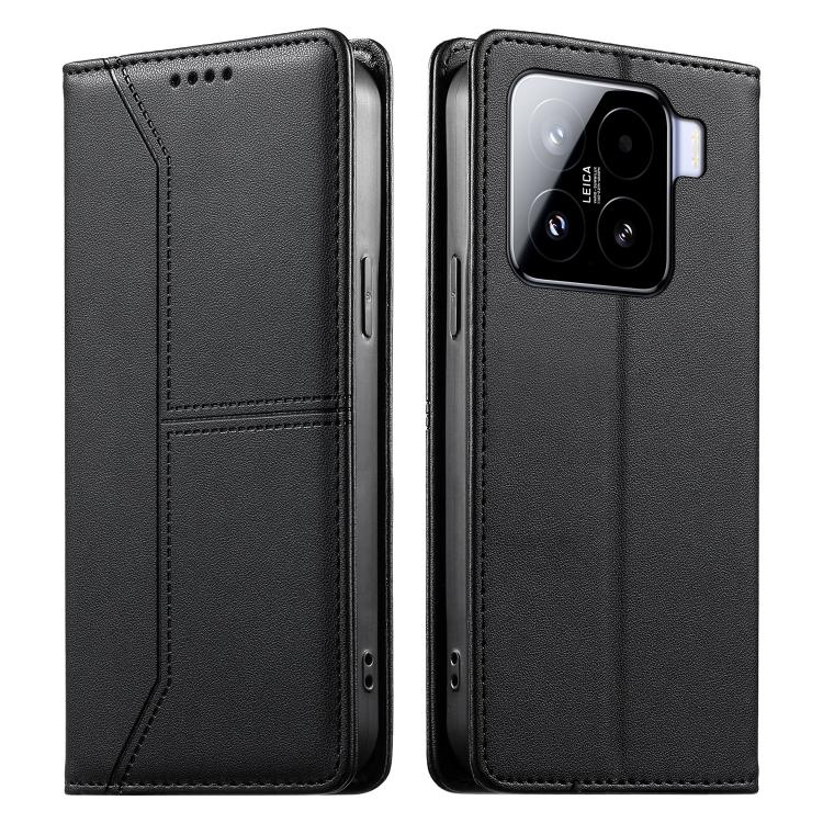 For Xiaomi 15 Stitched Line Magnetic RFID Vegan Leather Phone Case(Black)