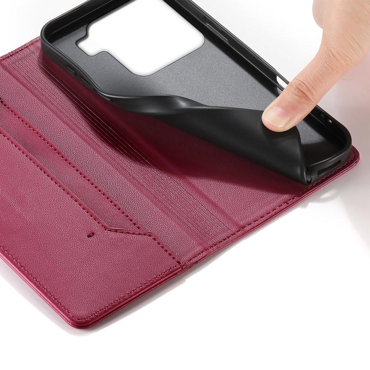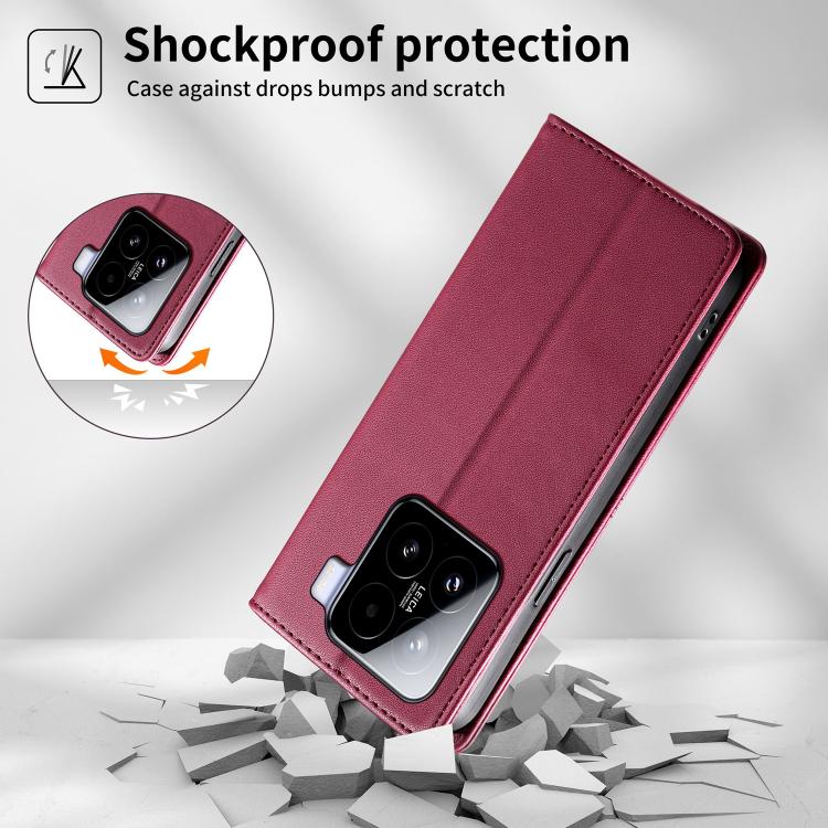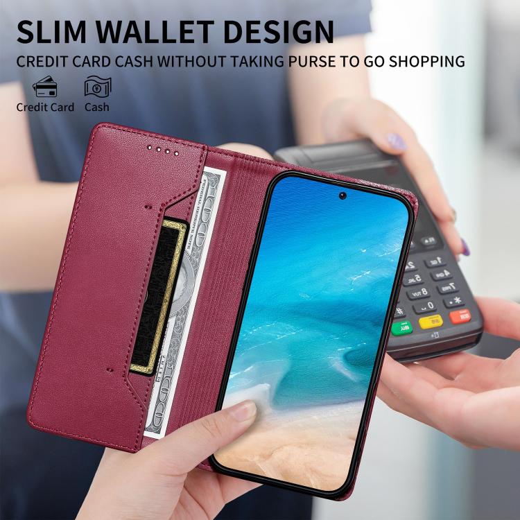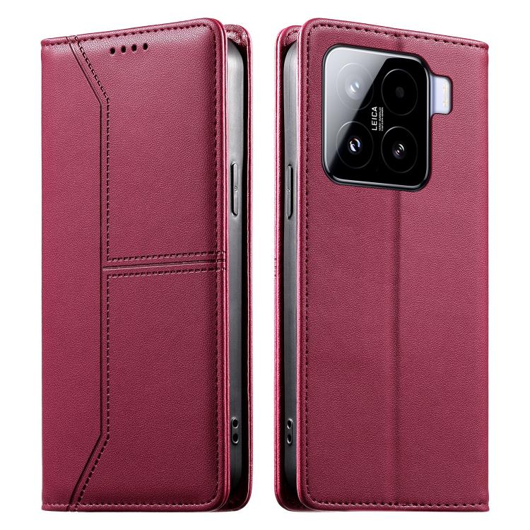 For Xiaomi 15 Stitched Line Magnetic RFID Vegan Leather Phone Case(Wine Red)