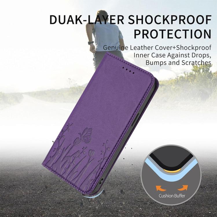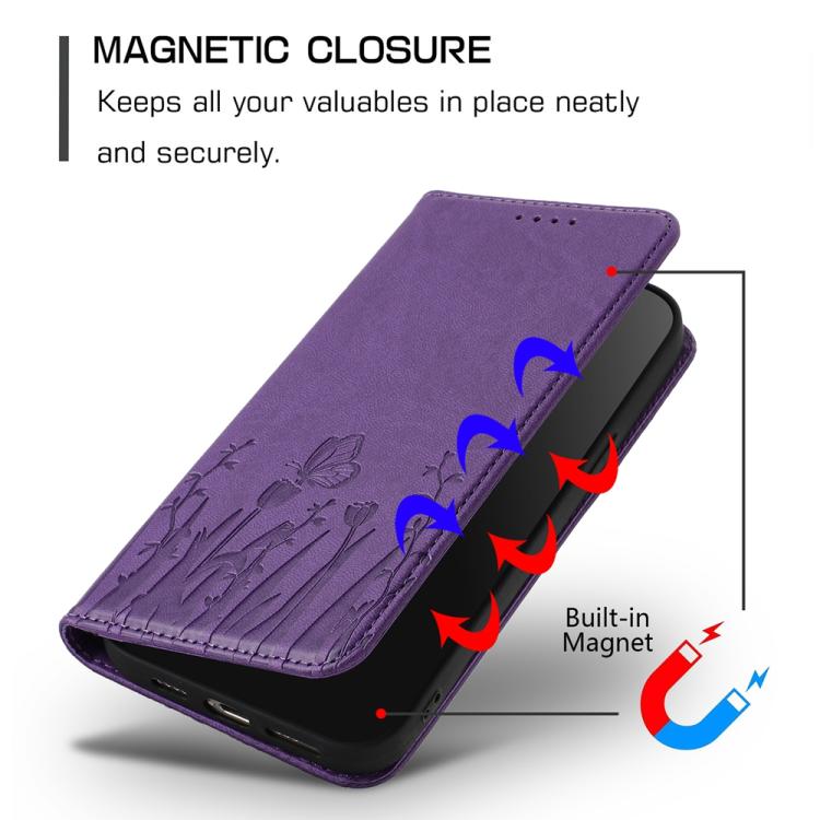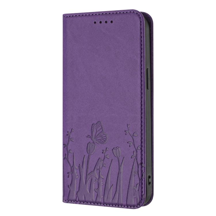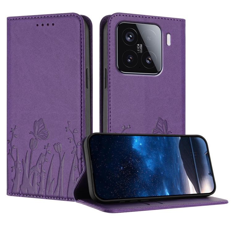 For Xiaomi 15 Tulips Butterfly Pattern Magnetic Vegan Leather Phone Case(Dark Purple)