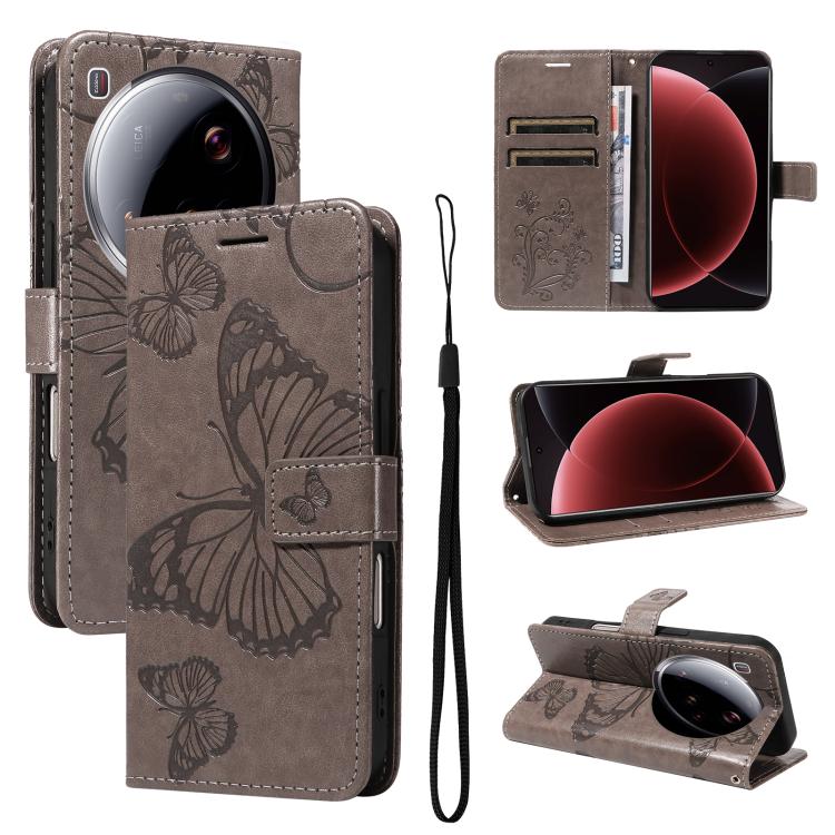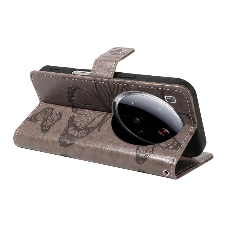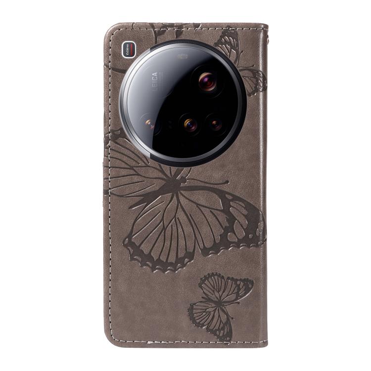 For Xiaomi 15 Ultra 5G Global 3D Butterfly Embossed Pattern Flip Leather Phone Case(Grey)