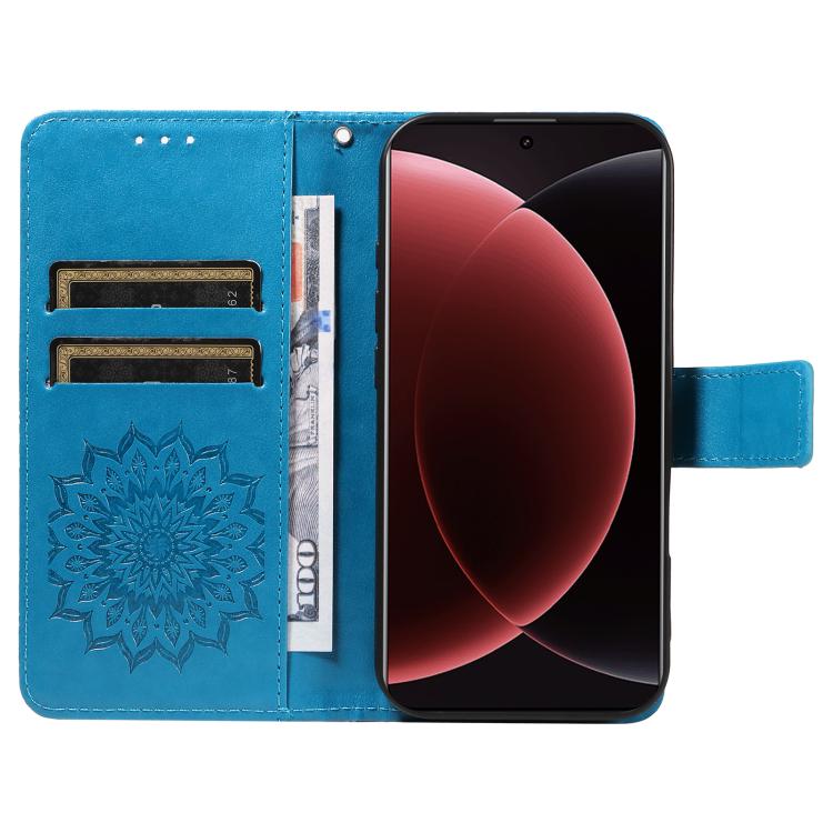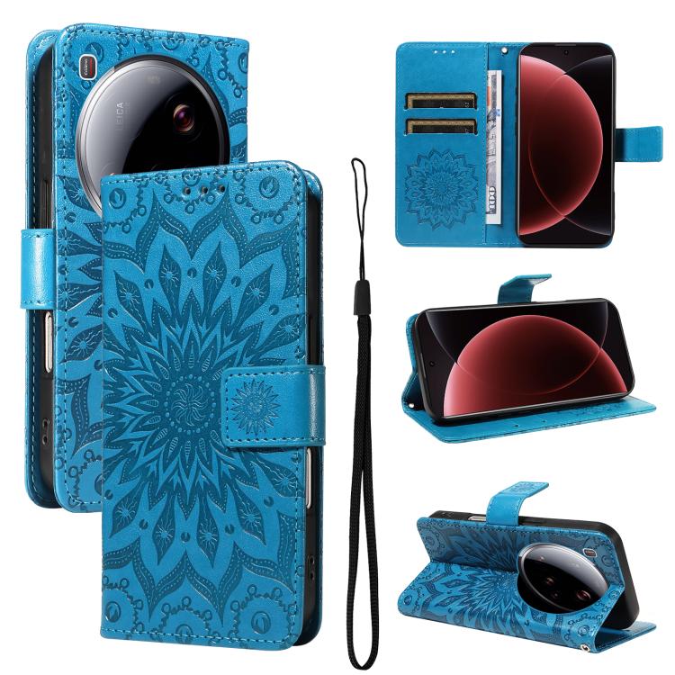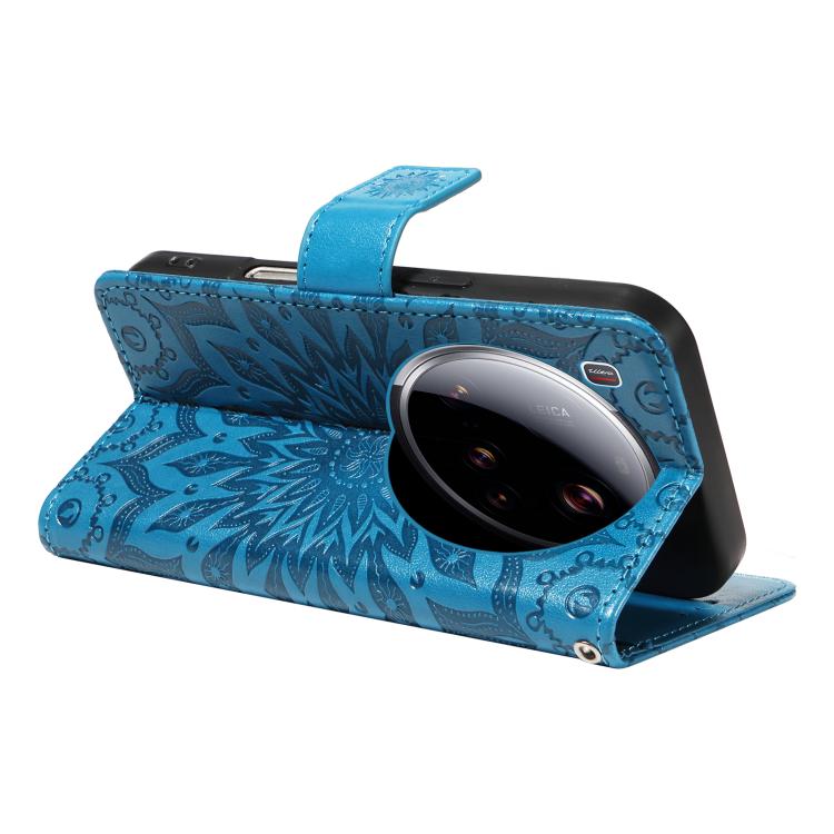 For Xiaomi 15 Ultra 5G Global Embossed Sunflower Pattern Flip Leather Phone Case(Blue)