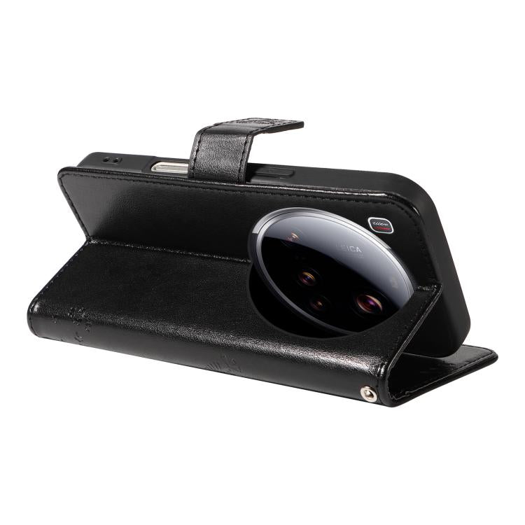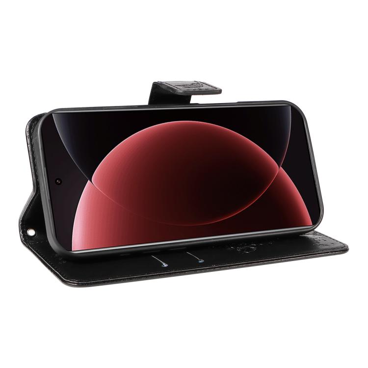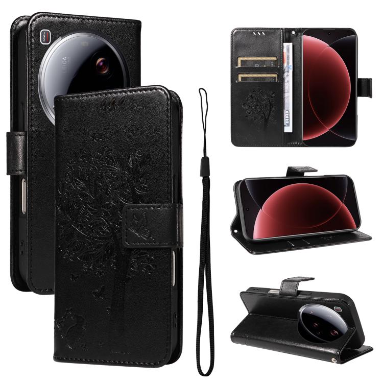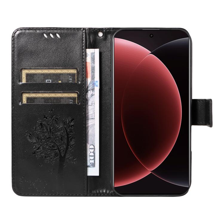 For Xiaomi 15 Ultra 5G Global Tree & Cat Embossed Pattern Flip Leather Phone Case(Black)
