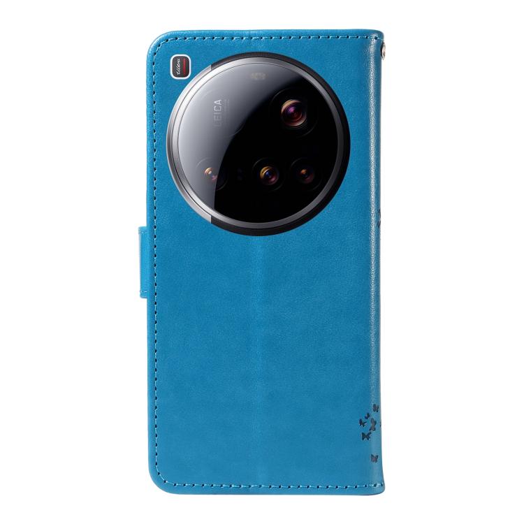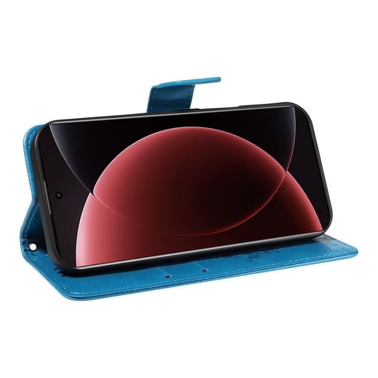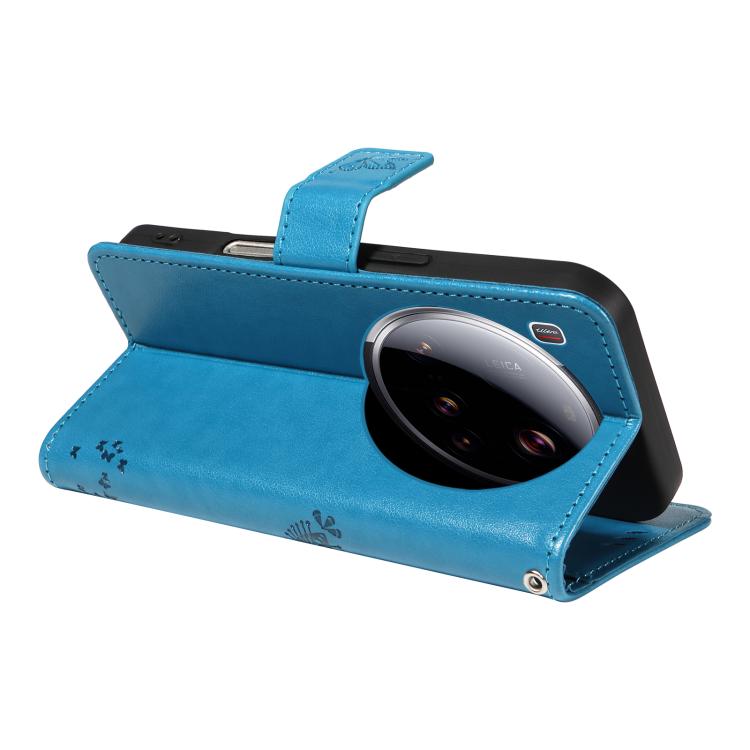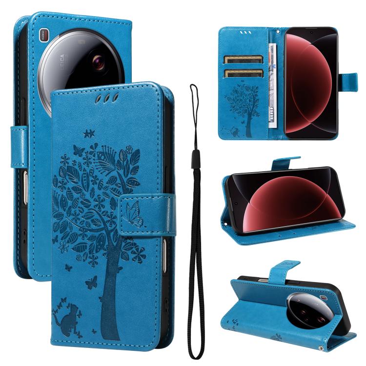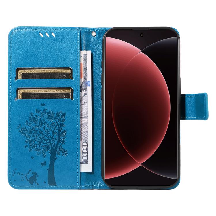 For Xiaomi 15 Ultra 5G Global Tree & Cat Embossed Pattern Flip Leather Phone Case(Blue)